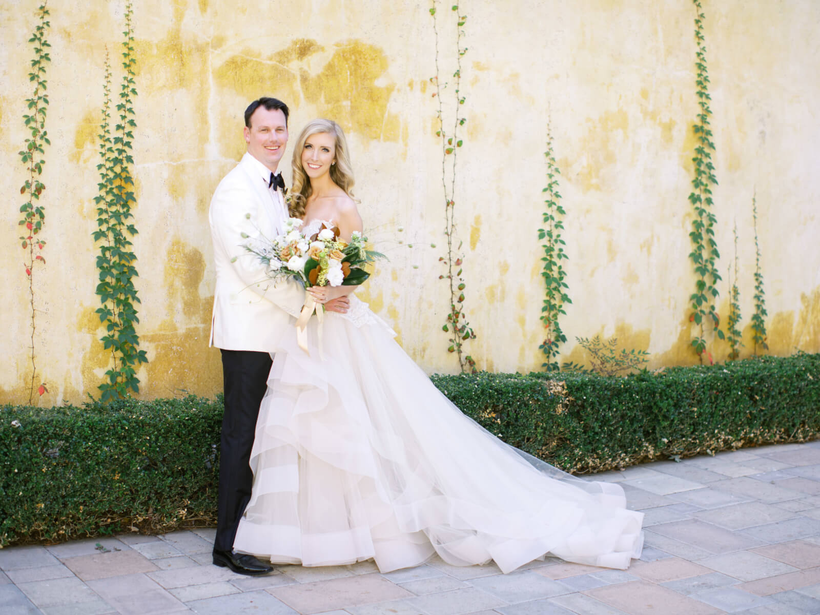 These two tied that knot at Andretti Winery in Napa Valley. Their grounds created the perfect backdrop for a romantic, outdoor wedding reception. We absolutely love how the soft yellow hues in the florals played perfectly against the warm color of the winery.