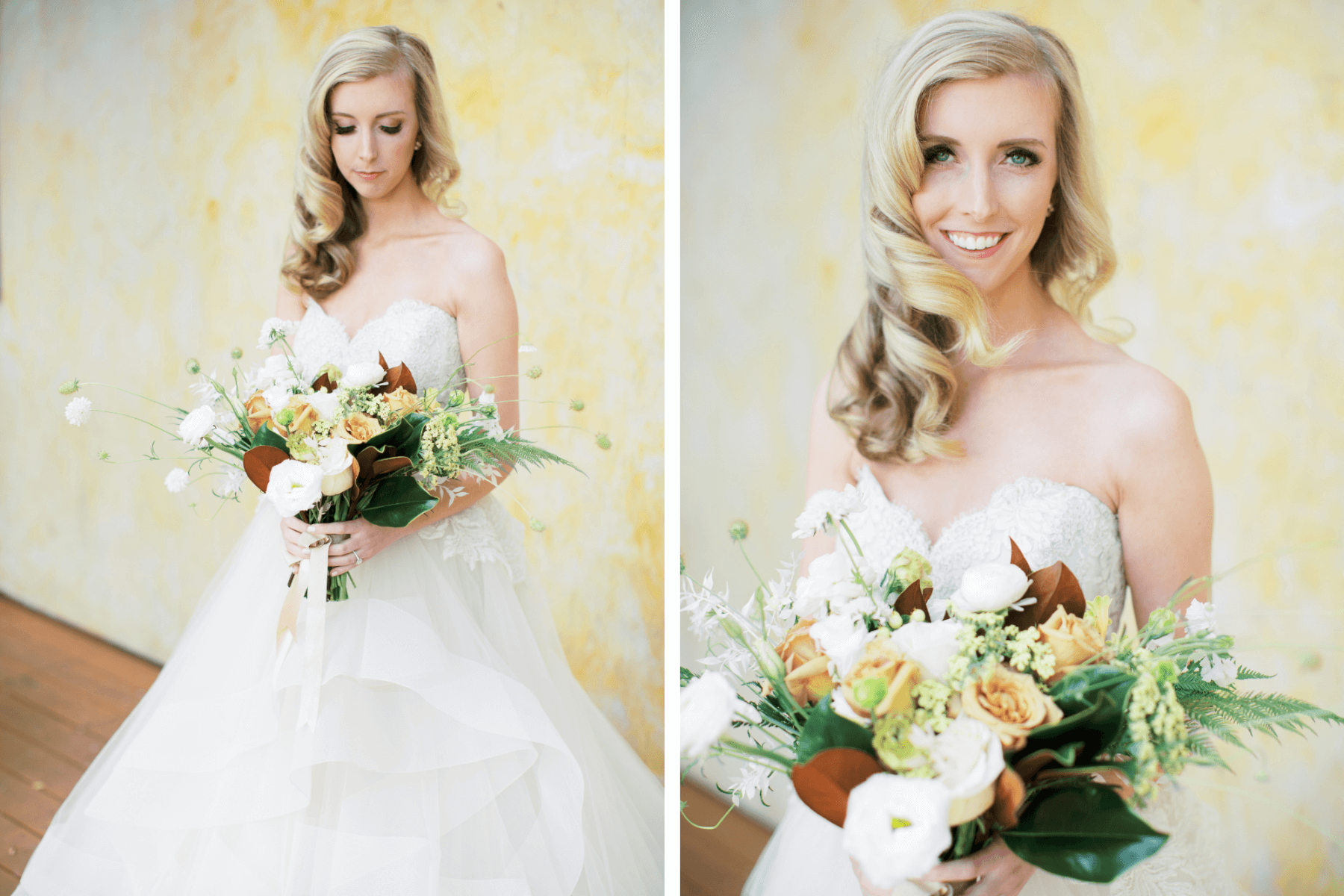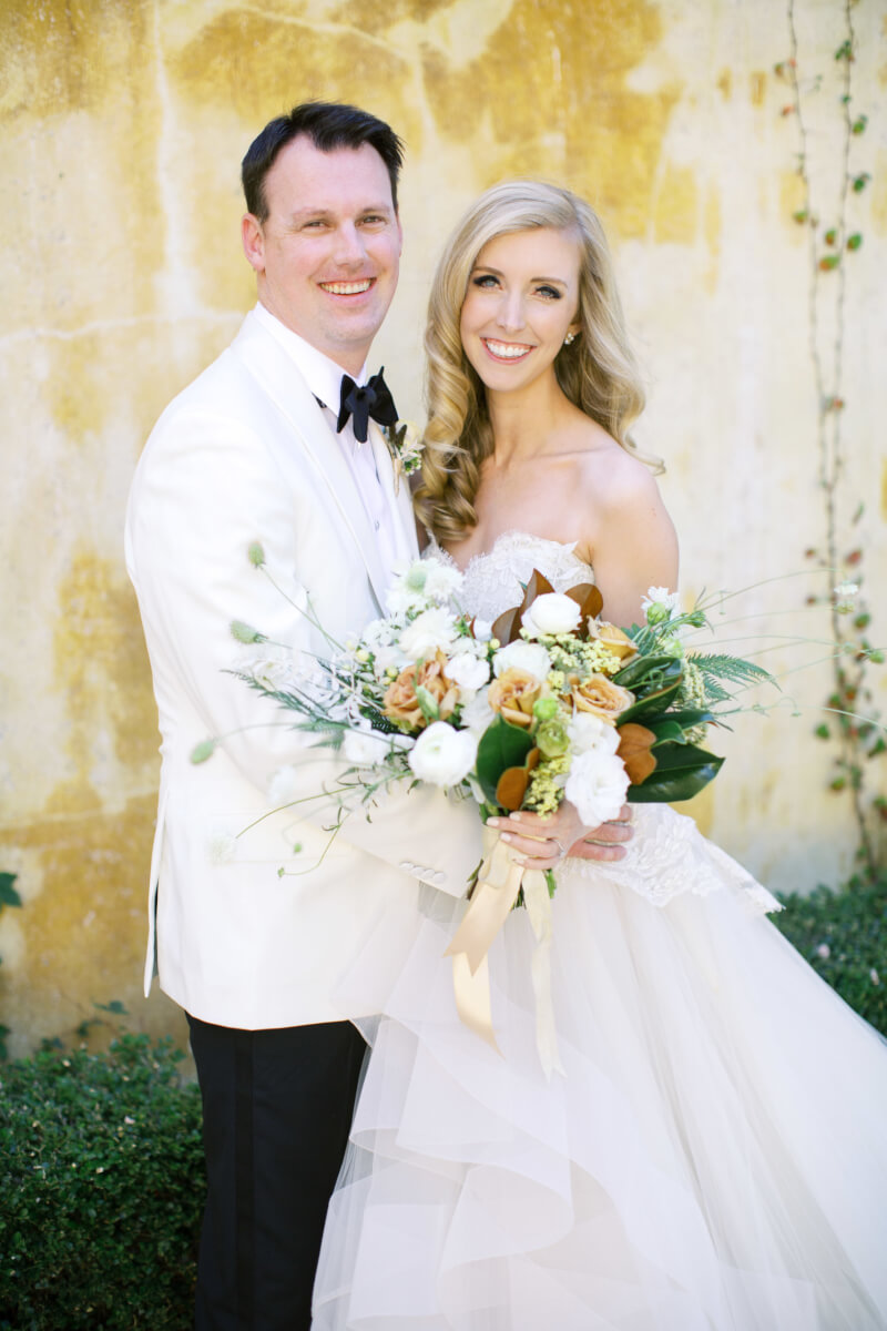Hannah described a classic palette of cream, black, and hints of yellow. We incorporated magnolia leaves for a bold natural element. Those graphic leaves, paired with creamy white and buttery yellow blooms, brought so much life and warmth into the design.